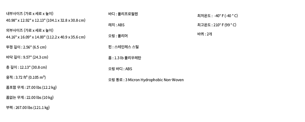 내부사이즈 : 104.1 x 32.8 x 30.8 cm