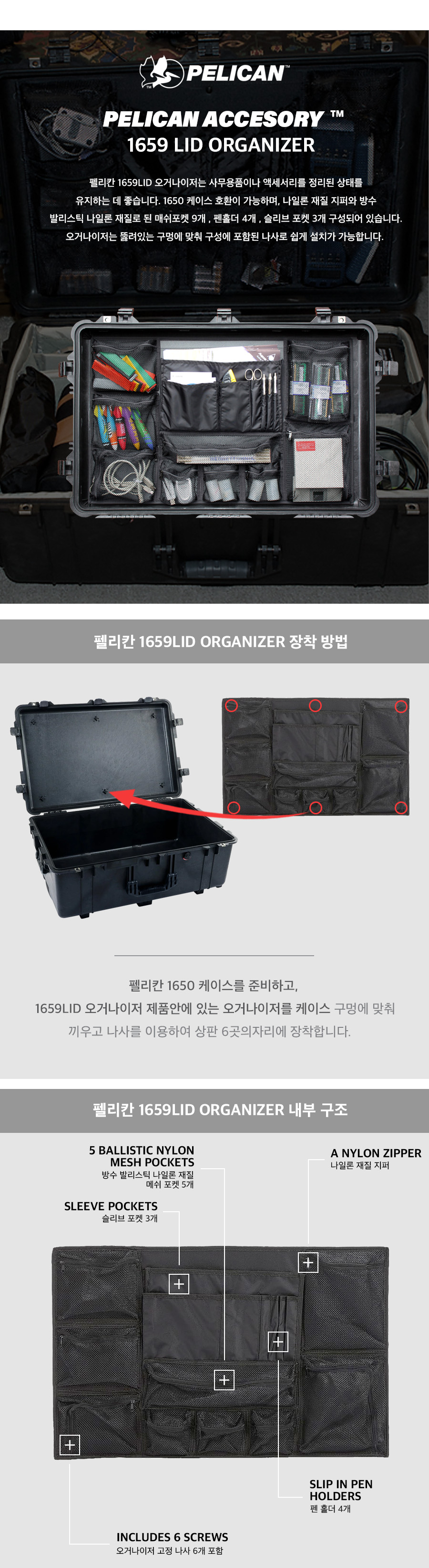펠리칸 1659 오거나이저 그물망 (펠리칸케이스 1650 전용)