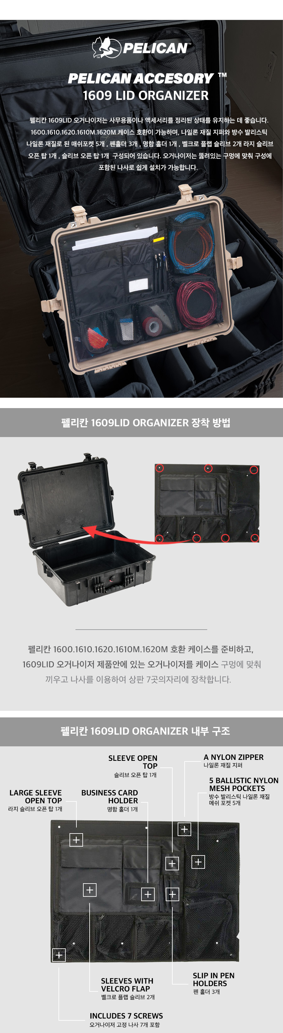 펠리칸케이스 1609 (그물망,오거나이저) / 1600, 1610, 1610M, 1620, 1620M 호환가능